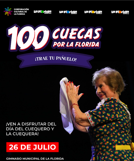 La Corporación Cultural de La Florida, en colaboración con la Corporación Municipal de Educación, Salud, Cultura y Recreación, y la Dirección de Desarrollo Social, se complace en anunciar las 17 agrupaciones seleccionadas para participar en el evento «100 cuecas por La Florida», que se llevará a cabo el sábado 26 de julio en el Gimnasio Municipal de La Florida a partir de las 13:00 horas.