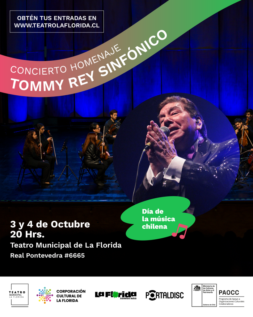 La programación comienza el viernes 3 y sábado 4 de octubre con “Tommy Rey Sinfónico”, un encuentro donde la Orquesta de Cámara del Teatro Municipal de La Florida interpretará clásicos como *La parabólica* y *Un año más* junto a Jorge “Rey”, hijo de Tommy Rey, bajo la dirección del maestro Igor Osses. Una oportunidad imperdible para ver cómo la cumbia chilena se funde con el lenguaje sinfónico, en una propuesta fresca y emotiva para comenzar el mes de la música.